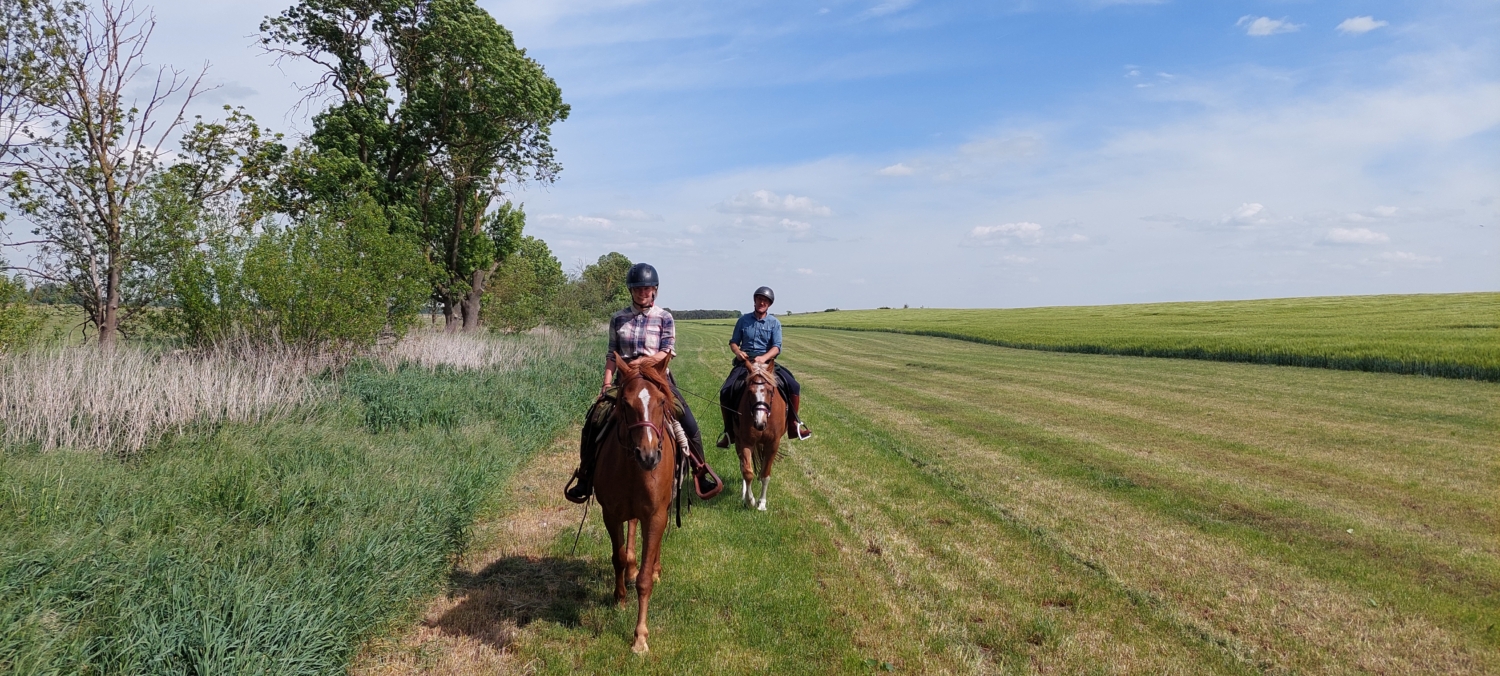 Erleben sie 2 Tage hoch zu Ross in der Natur – Aufsteigen und Abschalten unser Motto. Wir reiten auf Sandwegen, über Wiesenwege und durch Wälder, entlang der Alten Poststraße Berlin–Hamburg, ein historischer Handelsweg mit Geschichten aus der preußischen Zeit, und der ehemaligen Eisenbahnlinie Nauen–Kremmen. Die sandigen Böden laden zu herrlichen Trabstecken und Galoppaden ein. Kraniche, Störche und Wildtiere begleiten uns die 2 Tage im östlichen Havelland.